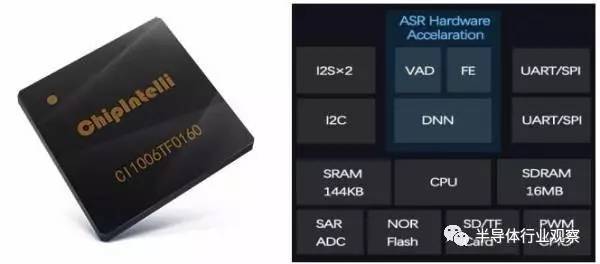 启英泰伦(chipintelli)于 2015 年 11 月在成都成立。该公司的 CI1006 是一款集成了神经网络加速硬件来做语音识别的芯片,可实现单芯片本地离线大词汇量识别。