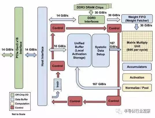 Tensor Processing Unit。Google 的张量处理器。2016 年 AlphaGo 打败李世石,2017 年 AlphaGo 打败柯洁,两次人工智能催化事件给芯片行业带来的冲击无疑就是 TPU 的出现和解密。Google 在 2017 年 5 月的开发者 I/O 大会上正式公布了 TPU2,又称 Cloud TPU。相比于 TPU1,TPU2 既可以用于 training,又可以用于 inference。TPU1 使用了脉动阵列的流处理结构,具体的细节可以参考如下的文章「Google TPU 揭密」。