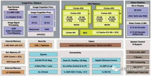 Image Cognition Processor。图像认知处理器 ICP,加拿大公司 CogniVue 开发的用于视觉处理和图像认知的 IP。跑个题,CogniVue 一开始是 Freescale 的 IP 供应商,后来于 2015 年被 Freescale 收购以进一步加强 ADAS 芯片的整合开发;随后,Freescale 又被 NXP 118 亿美元拿下;还没完,高通近 400 亿美元吞并了 NXP。现在 NXP 家的 ADAS SOC 芯片 S32V 系列中,就用到了两个 ICP IP。