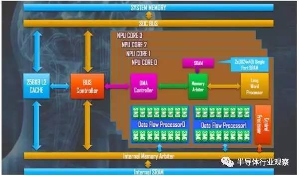 中星微电子(Vimicro)的星光智能一号。中星微于 2016 年抢先发布了「星光智能一号」NPU。但是,这不是一个专为加速 Neural Network 而开发的处理器。业内都知道其内部集成了多个 DSP 核(其称为 NPU core),通过 SIMD 指令的调度来实现对 CNN、DNN 的支持。以这个逻辑,似乎很多芯片都可以叫 NPU,其他以 DSP 为计算核心的 SOC 芯片的命名和宣传都相对保守了。