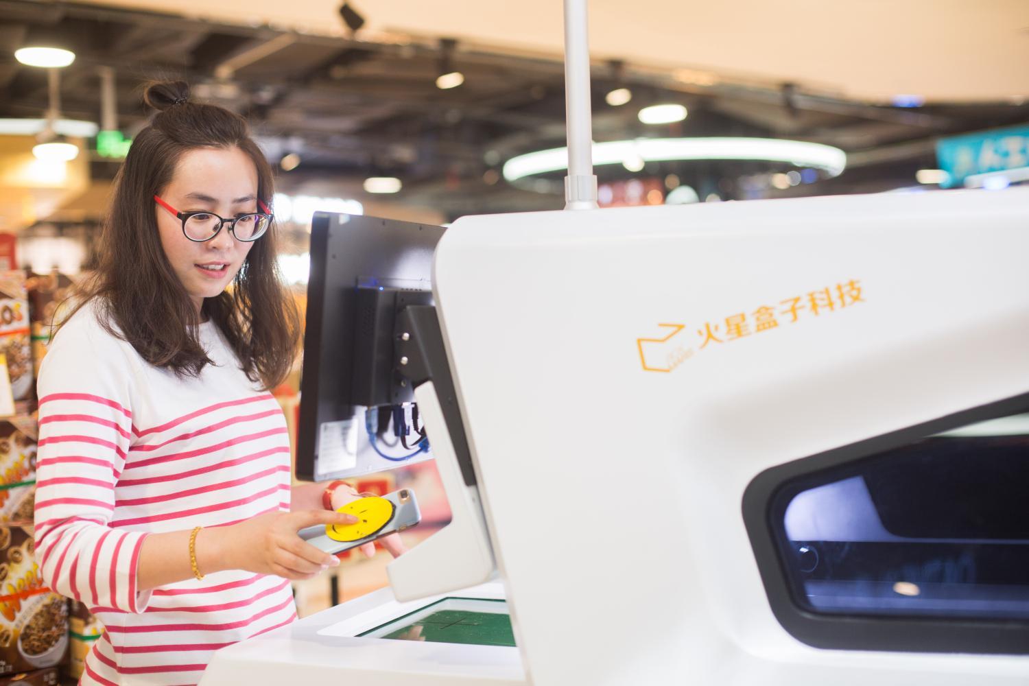 火星盒子目前的解决方案是,在商超为火星盒子打开的专属结算通道处安装一台核验机。