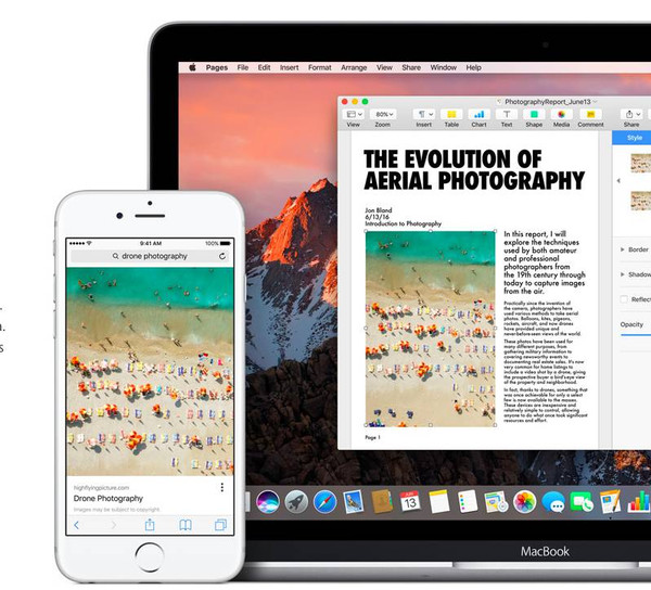 另外,在手机或者 iPad 上随意复制,在电脑上直接粘贴,这样的功能终于实现了。复制的内容除了文字,还包括图片。爱范儿(微信号:ifanr)手上有两台 Mac 刷入了预览版 Sierra,其中一台 Mac 的通用剪贴板不可用,另一台可以支持 iOS 向 macOS 剪贴,但不可逆。对此爱范儿(微信号:ifanr)咨询了苹果,苹果表示这一功能将会在 7 月份发布的公众测试版中正式开放。