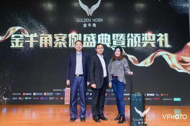 图:金牛角案例盛典组委会秘书长范超伟(中间)为现场“锦鲤”(右一)颁奖