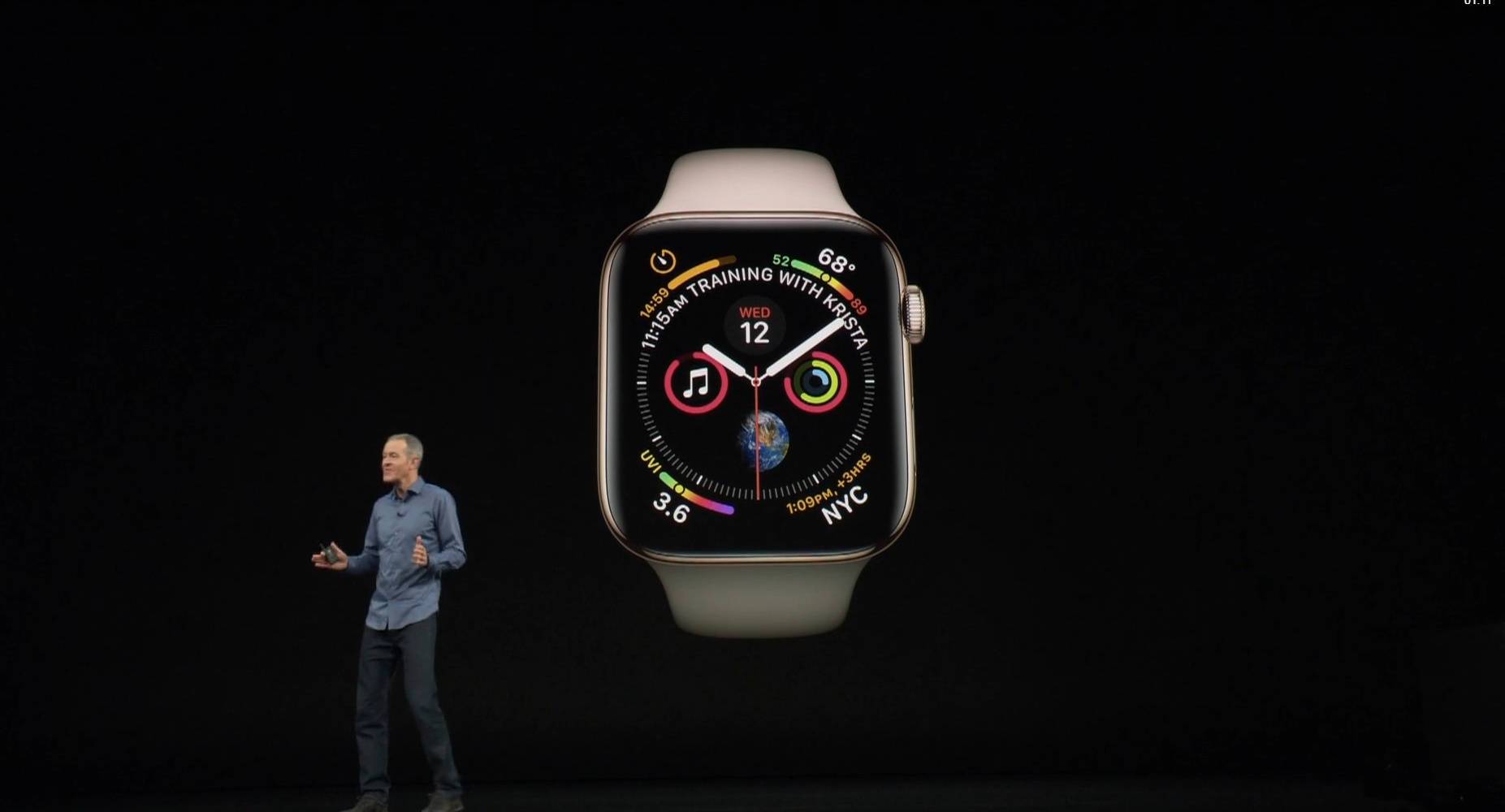 此次发布Apple Watch Series 4,内置功能提升主要表现在关注“健康”。表冠上安置的传感器支持直接采集并显示心电图(ECG)以及心率,成为医疗监测级的智能设备。全新的陀螺仪内置重力感应系统,监测使用者发生跌倒后,会自动拨打求助电话并向紧急联系人发送位置信息。同时陀螺仪配合新的加速计,将带来更加及时、更加精准的运动追踪能力,适用于游泳、跑步、舞蹈等多项运动。