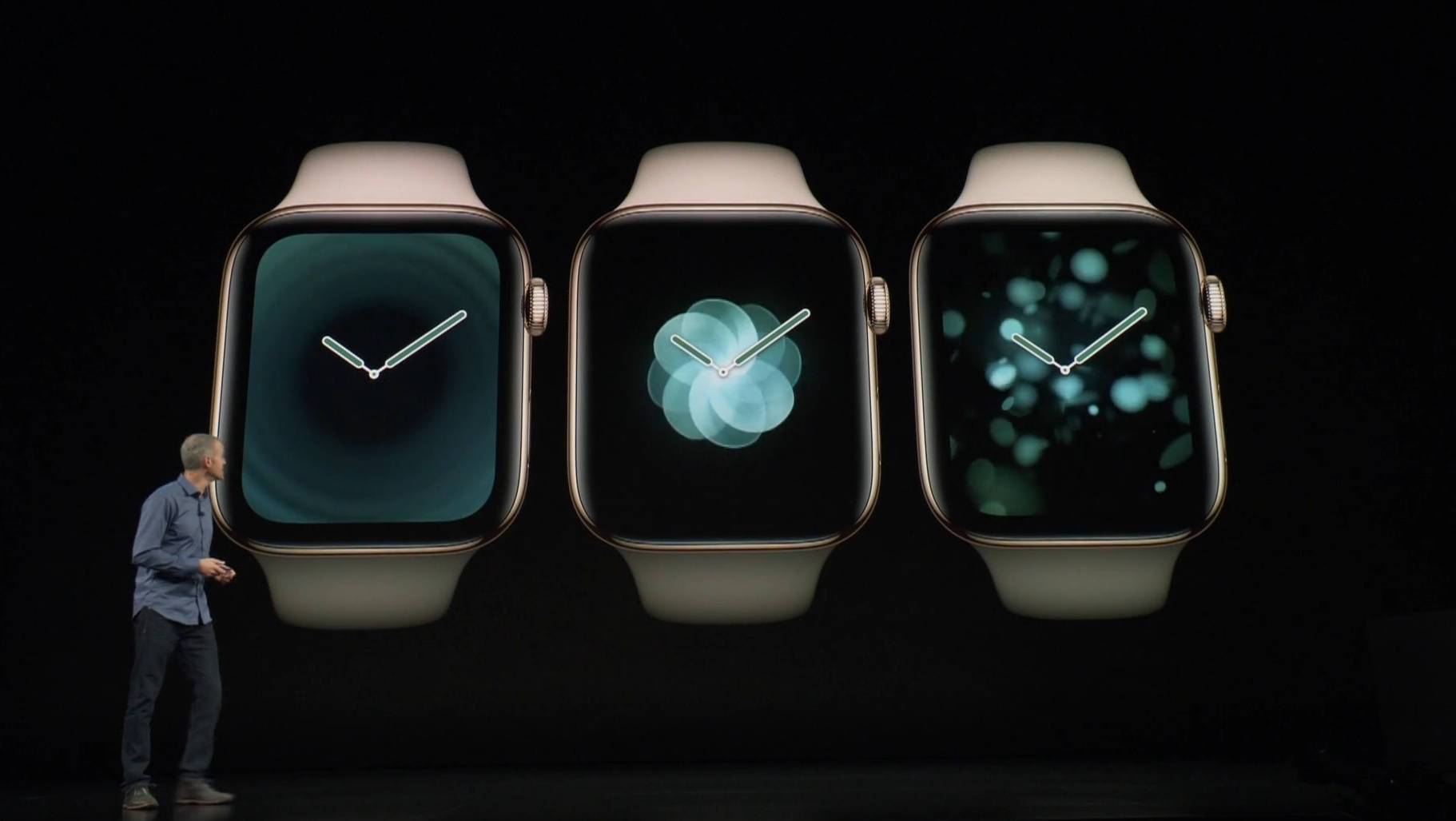 最先发布的是Apple Watch Series 4,外观上其延续前几代的方形表盘设计,整体变得更为纤薄。表盘尺寸虽然没有改动,但受“无边框”设计理念影响,黑色边框进一步缩窄,屏占比进一步提升,相比上代至少提升30%,屏幕设计由四方形改用圆角设计。