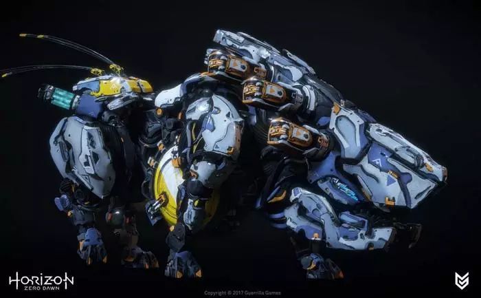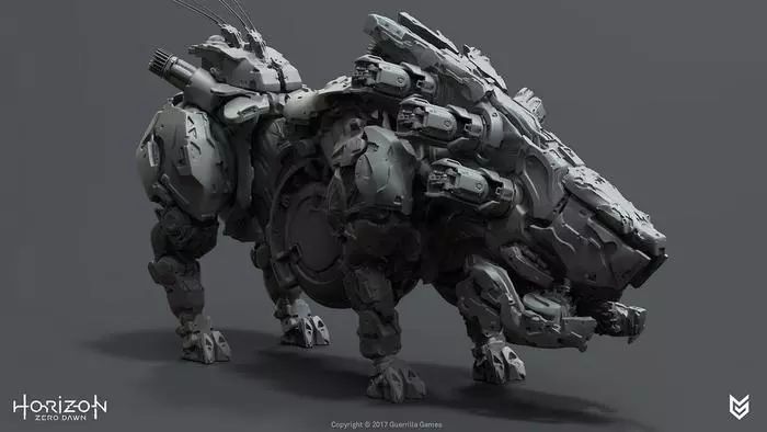 Guerrilla雇佣了一位自由概念艺术家,为每台机器人创作详细的渲染图,并在图中注明每个部分的细节。拿到这些模型后,维塔士的艺术家们使用一套叫做ZBrush的3D数字雕刻和绘图软件(它通常被用于绘制在过场动画中出现的高精细度物体),一步一步精心重塑它们……由于每台机器人都有太多组件,这些组件会分配给不同人,之后再被组装成为一个整体。这就要求团队负责人和项目艺术总监在注重细节的同时掌控全局。