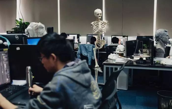 虽然兰吉利鄙视“作坊”标签,但维塔士的办公室格局确实呈现出一种作坊式对称。每5名艺术家坐成一排,他们的办公桌上都摆放着两台显示器;小组主管坐在排尾,而三到四个小组由一位艺术总监监督——艺术总监负责管理整个项目,以及与客户工作室沟通。