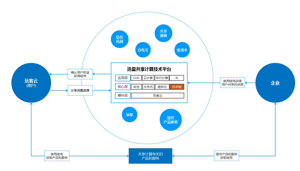 如今迅雷的业务重心就是在共享计算、区块链技术两个方向进行探索。而共享计算和区块链技术,和迅雷的技术优势一脉相承,都是去中心化的分布式技术。可以说迅雷天生就是一家区块链公司。