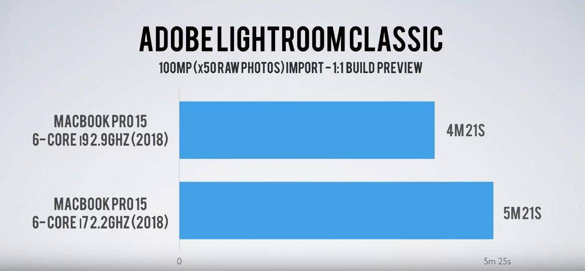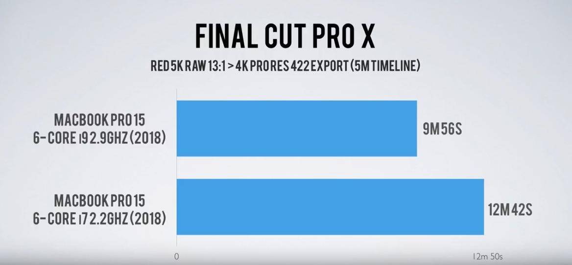 但也有人提出了不同的见解。另一位知名播主 Jonathan Morrison就专门使用了两台 2018 年的 15 英寸、i7 和 i9 配置的 MacBook Pro 进行了多轮对比测试,包括像 Adobe LightRoom RAW 照片批量导出、Final Cut Pro 4K 视频渲染等,他表示 i9 版本依旧会比 i7 版本速度快 1-2 分钟。