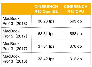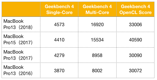 让人意外的是,哪怕是对比去年 15 英寸的 i7 版本,新 MacBook Pro 13 英寸款仍然有着一定优势,甚至你还可以根据需求选择加钱定制性能更好的酷睿 i7+16GB 内存版本。