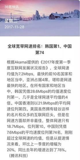 事实上,韩国的宽带网速一直以来都位居全球第一。没想到几个月后,韩国就跌下第一“神坛”,排在了第4位,位居中国香港之后。