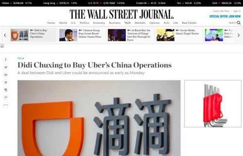 接着,彭博社、华尔街日报、路透社、Recode等外媒均对合并的消息进行了跟进报道。华尔街日报甚至称,“滴滴出行已经与Uber中国达成收购协议,消息最早周一公布,作为股权互换协议的一部分,Uber将成为该合并公司的最大股东”。