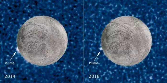 除了卡西尼号任务,来自哈勃望远镜的研究成果则发表在《天体物理学研究通讯》(Astrophysical Journal Letters)上。据哈勃望远镜的数据显示,木卫二和土卫二的情况非常类似:外面被厚厚的冰层包裹,冰层下隐藏着流动的海洋。科学家们认为,冰层下的海洋可能是太阳系中最有可能存在地外生命的地方。