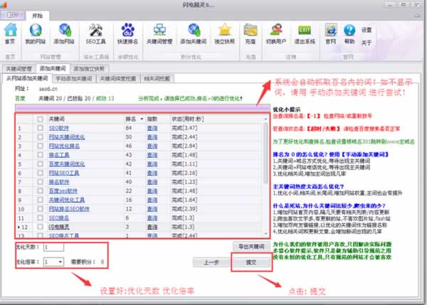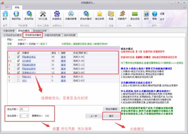 四、 选择关键词—输入优化天数—输入优化倍率—提交