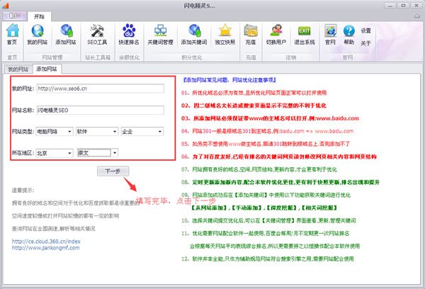 下面我来大家演示下怎样使用,闪电精灵SEO官方网站也有使用教程,比较详细。