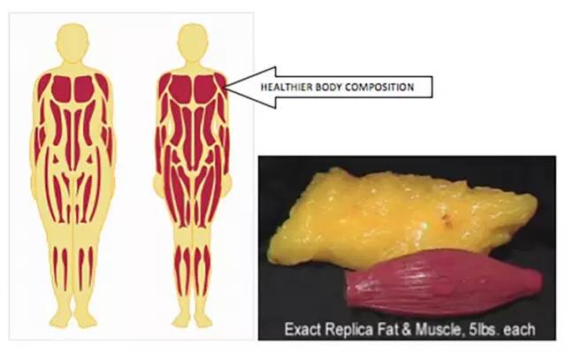 同样是 5 磅的重量,脂肪的体积却比肌肉大这么多。