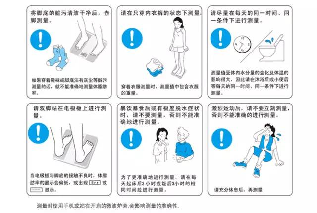 看这里,人家说明书里面写了,测量时需要先洗洗脚,然后脱剩内衣裤,再进行测量。