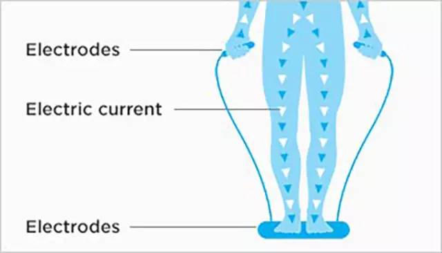 测量时由电极片发出极微小电流经过身体,测量电阻的数据来得出测量者的体重、体制百分比、水分百分比、肌肉百分比以及骨质量百分比的方法。