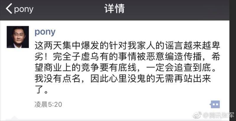 Pony怒了:针对我家人的谣言越来越卑劣