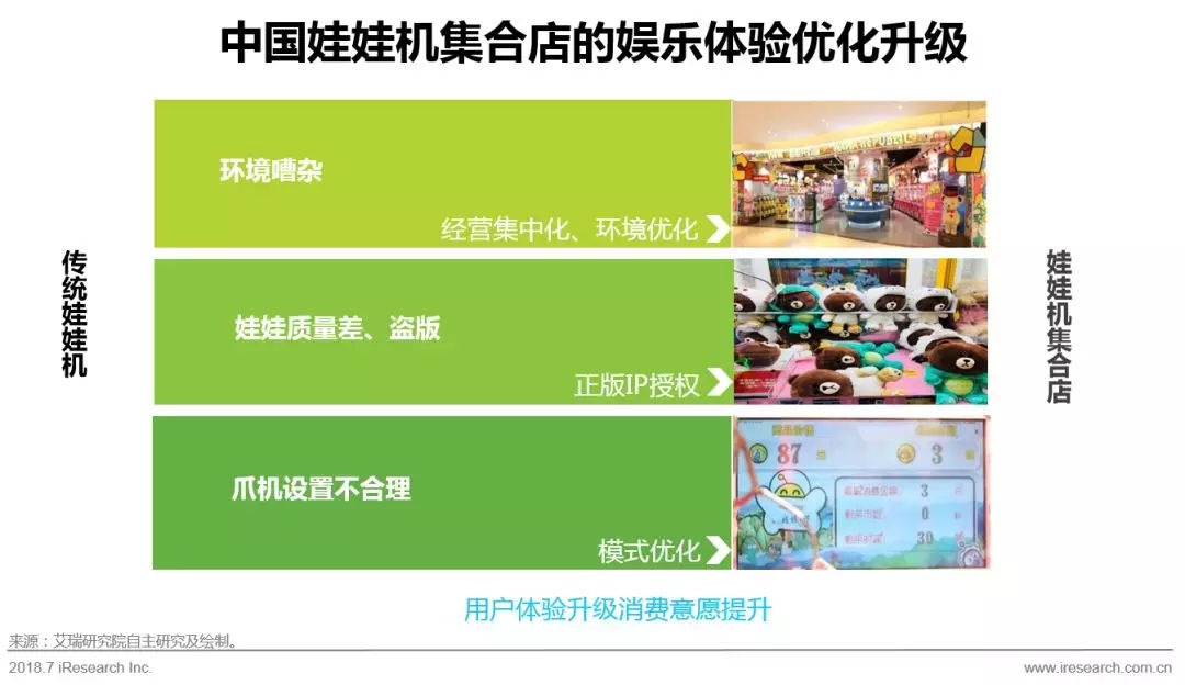 近年来,将娃娃机集中化经营和管理的娃娃机集合店也如雨后春笋般涌现,娃娃机集合店的选址立足于大型商场等人流密集地段,打造碎片化休闲化的消费场景,并基于传统娃娃机市场中盗版礼品泛滥、抓机体验差、环境不佳的痛点,进行模式创新,优化娱乐体验,提升了用户的消费意愿和消费体验。