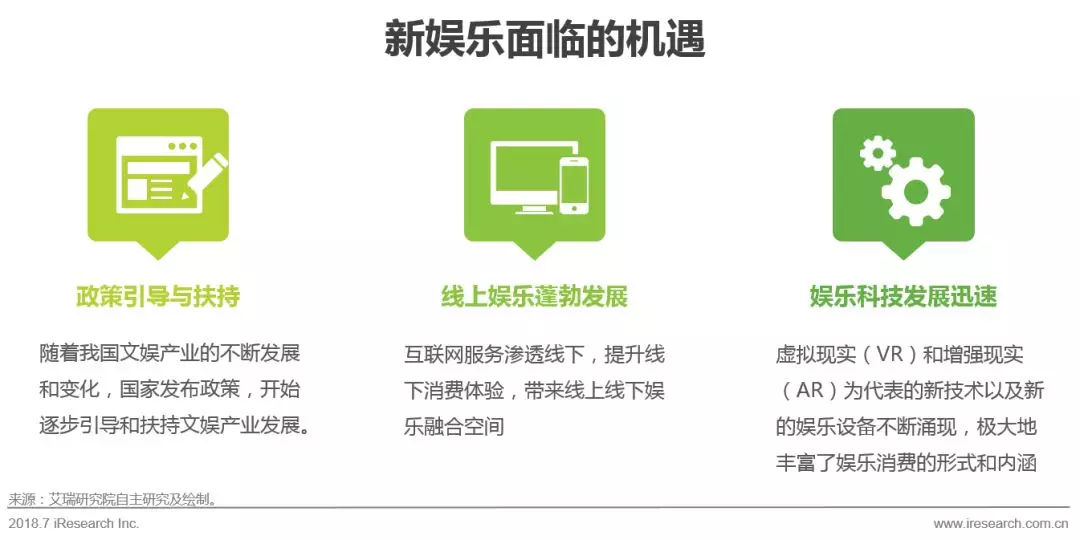从机遇上看,2010年来,随着我国文娱产业的不断发展和变化,尤其是线上娱乐的迅速普及,政策开始逐步引导和扶持产业发展,《文化部关于推动数字文化产业创新发展的指导意见》、 《文化部关于推动文化娱乐行业转型升级的意见》是这其中的典型代表。各类互联网服务都对线下娱乐产生了潜移默化的作用,这也成为线下娱乐转型升级和融合发展的前提条件。