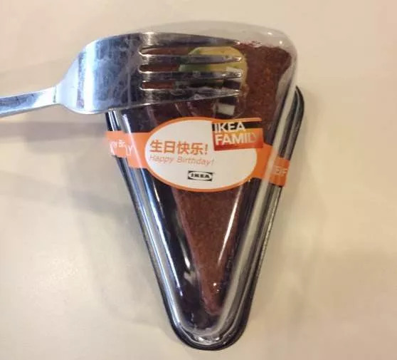 不过,这个免费的生日蛋糕的尺寸可能与你想象中的相差不小,具体可以参考下面的实物图。如果你在生日当月本来就有前往宜家商场的打算,不妨趁机享用这份礼物,不然或许并没有必要专程为了免费蛋糕前往。