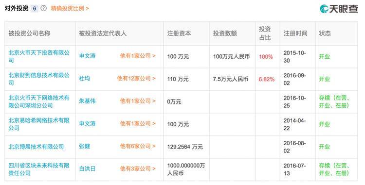 不过,火币网官方网站上显示的戴志康、真格基金、红杉中国等投资方与火币网的持股关系,在国内的工商信息系统中,并没有得到完整的体现。