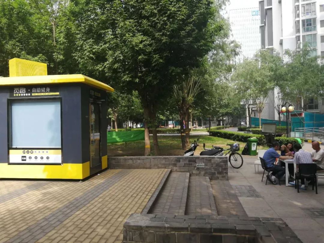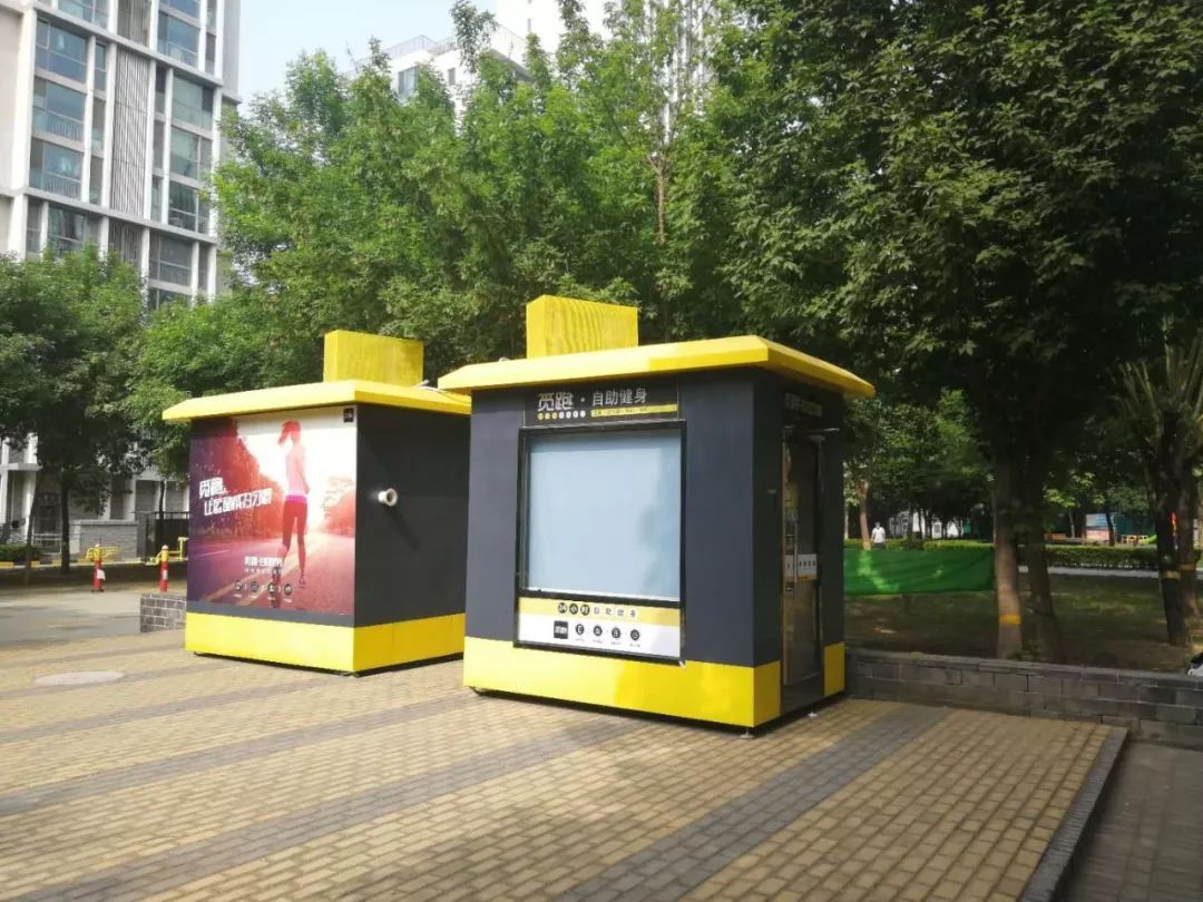 怀着这个想法,我终于觅到了一个有觅跑的小区,在我终于找到了“觅跑健身仓”——两个大概4平方米的铁盒子,形似报亭和公共厕所的结合体的时候,我还是被惊到了。