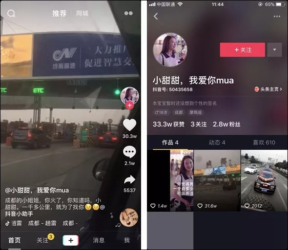 在这样的热潮中,“你的小甜甜”在10个小时内涨粉100万、不到一天涨粉超过300万,妥妥地成为了百万级抖音红人。