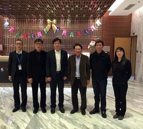 美的集团董事长方洪波(左二)与小米科技董事长雷军(左三)