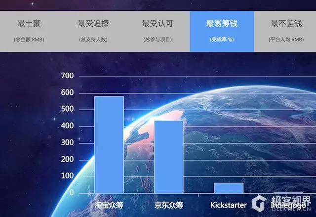 目前 Kickstarter 上众筹的总金额已经超过了 19.08 亿元人民币。