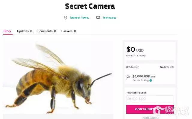 ▲比如这个叫「秘密摄像头」的项目,只给了一张蜜蜂的照片,连产品故事都没写就上来筹款了。