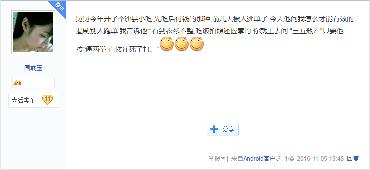 洗白的老哥们,最爱去“官方指定用餐点”-沙县小吃享受一顿,并在吧里直播跑路情况,吧里一度还出现了众多的跑路教程。
