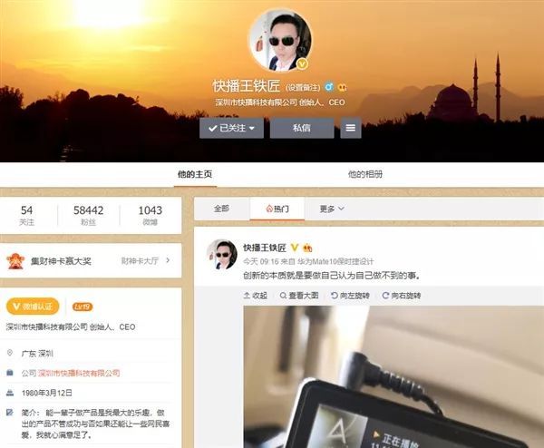 时隔20多天,3月2日上午,王欣突然现身微博发声:“创新的本质就是要做自己认为自己做不到的事。”配图为一张音乐播放器的照片,正在播放“难忘初恋的情人”。值得一提的是,王欣微博小尾巴显示“华为Mate 10保时捷设计。”