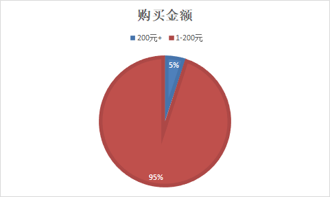 处于成长期的用户,购买金额达到200元的用户只有5%,95%的用户只有1-200元的购买金额。
