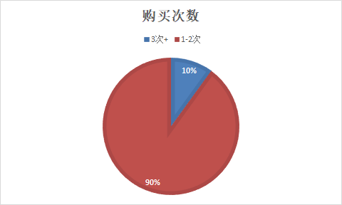 - 90%的用户购买次数只有1-2次,说明用户未养成购物习惯;