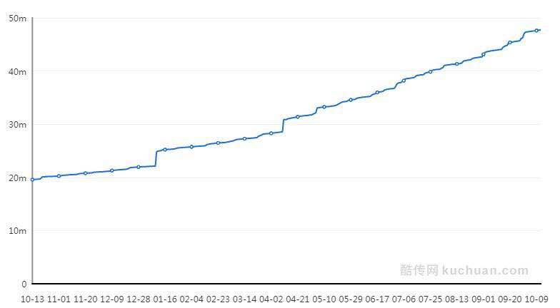 以从酷传上获取的某App过去一年下载量生成的趋势图为例: