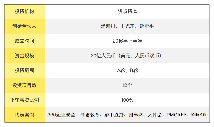 “基金是一支新基金,但人都是老人。” 成立于2016年3月的沸点资本,从团队到投资策略,均与市场上绝大部分VC路数有所不同。