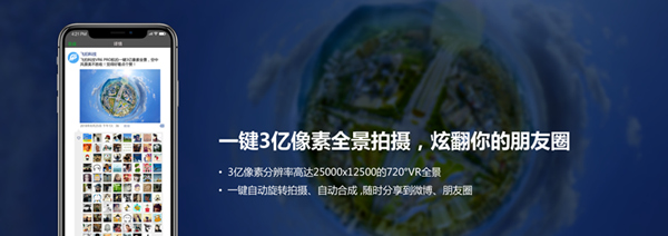 而在社交场景应用体验方面,飞拍科技开发了更贴近年轻人生活方式的功能。“一键3亿像素全景”拍摄功能,可拍摄分辨率高达2500012500的全景相片,拍摄完即可通过飞拍App将作品一键分享微信朋友圈、微博,圈粉吸睛能力十足。