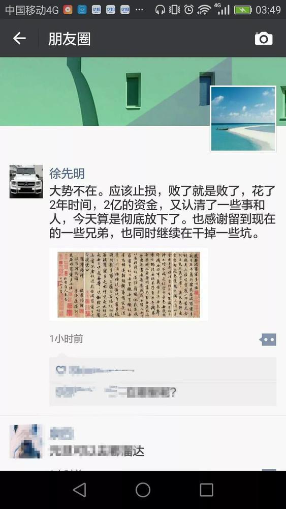 ◆ 车城网创始人徐先明盆友圈截图(来源:亿邦动力)