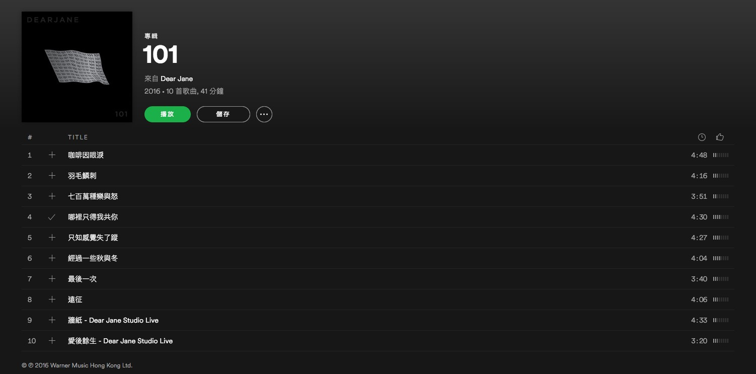 ▲(歌手:Dear Jane | 专辑:《101》| 来源:Spotify | 质量选项:高)