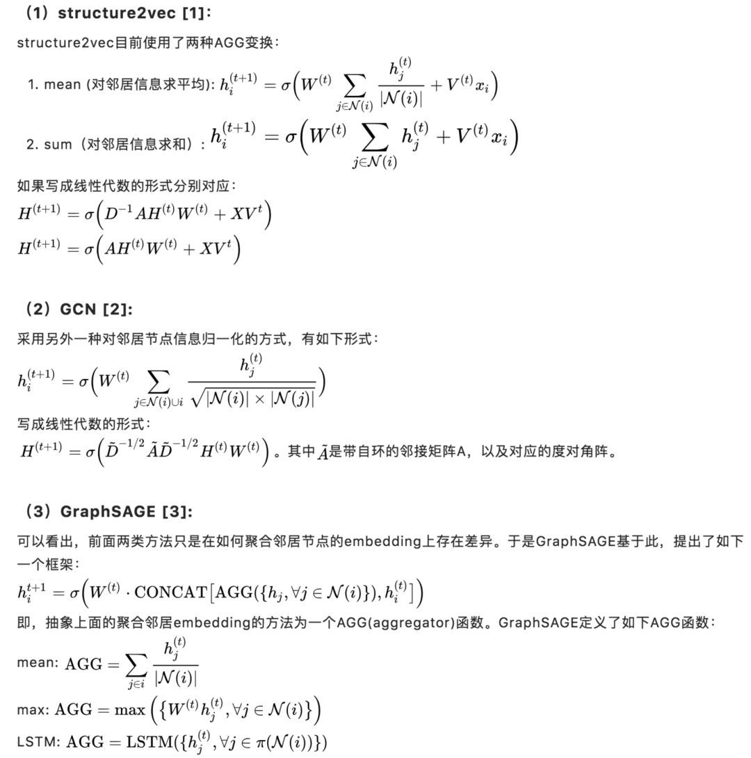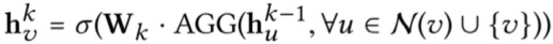 其中u为节点v本身或它的邻居,AGG为学习邻居信息的公式(比如直接相加等),sigma为激活函数。