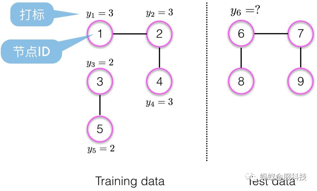 是节点所在联通子图的大小,即所在联通子图的节点数目)构成的一个训练数据集。对于机器学习算法来说,算法只是给定了这些训练数据,并不知道这些节点上的打标是怎么生成的。我们希望通过训练数据学一个函数,能够在新的待预测图数据上预测的好,即逼近。