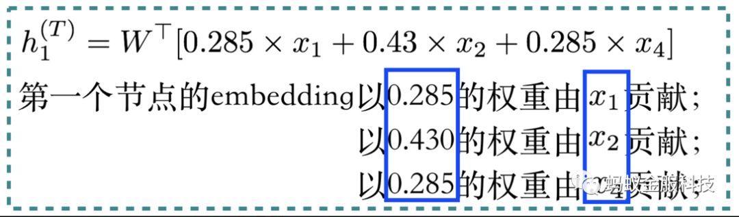 上面的例子告诉我们,对于每个节点,T跳能达到的邻居节点都有用,且以上面的权重衡量。