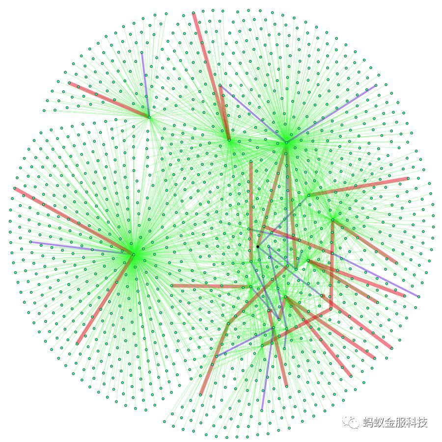 转账图中,每个节点均为一个账户,刻画了支付宝中的转账行为。设备共用图中,包括账户和设备两种节点,如果一个账户曾在某设备上登录,则这个账户和设备之间就有一条边。