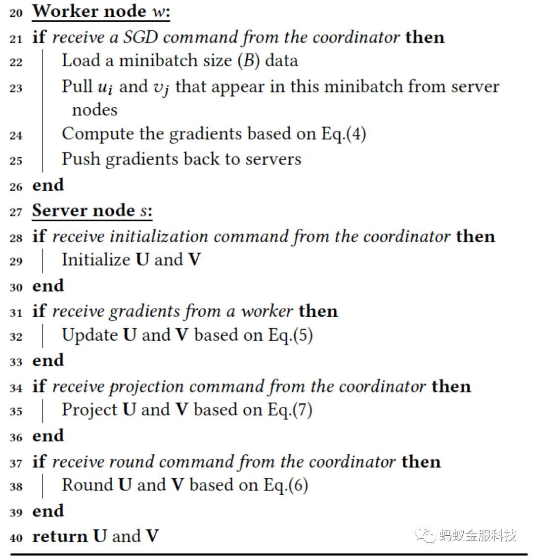 这里Coordinator负责模型的调度;Server负责存储及更新模型,这里就是用户和物品的潜在向量