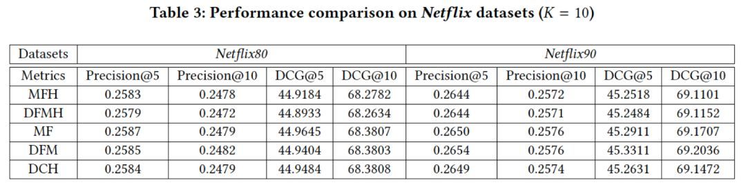 - MFH,即使用MF得到用户和物品实数潜在向量之后,使用公式(6)映射成哈希向量