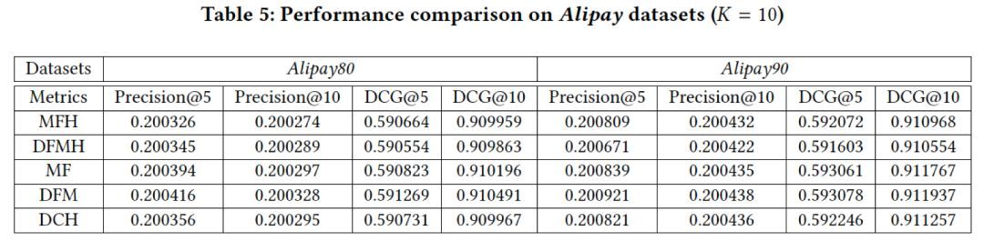 我们提出的DCH方法,可以用于根据用户——物品的行为历史,产出用户和物品的哈希向量,该向量有两个用途:(1)可以直接使用哈希表查找等方式找到与某用户最相似的物品,用于召回或推荐;(2)该哈希向量表示了用户和物品的偏好特征,可以直接作为高阶的特征送到其他模型(如逻辑回归)中使用,进一步提升模型的效果。因此,可以被广泛的应用于蚂蚁的各个推荐场景中去。