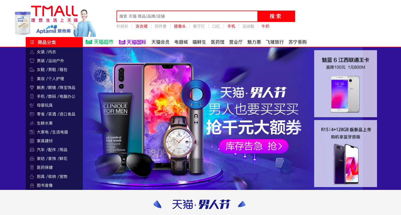 4 月 24 日至 26 日被天猫定为「男人节」。跟往常一样,在天猫眼里最好的庆祝方式就是疯狂的买买买。在 UI 设计以蓝紫色为主的活动页面里,男装、男士护肤品、家电数码手机和名车等都被纳入促销品类,瞄准直男群体。