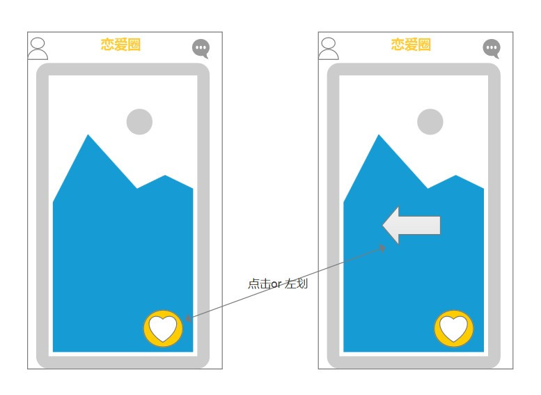 - 产品如果按照我上面分析的,主打的是慢节奏,那么在点击喜欢这个按钮时,能否增加一个交互效果,也就是按键时常,你按住喜欢按钮的时间越长,表明越喜欢,那么系统可以给女生重点推荐。另外,对男性用户来说,这也是另一个方面情感的表达